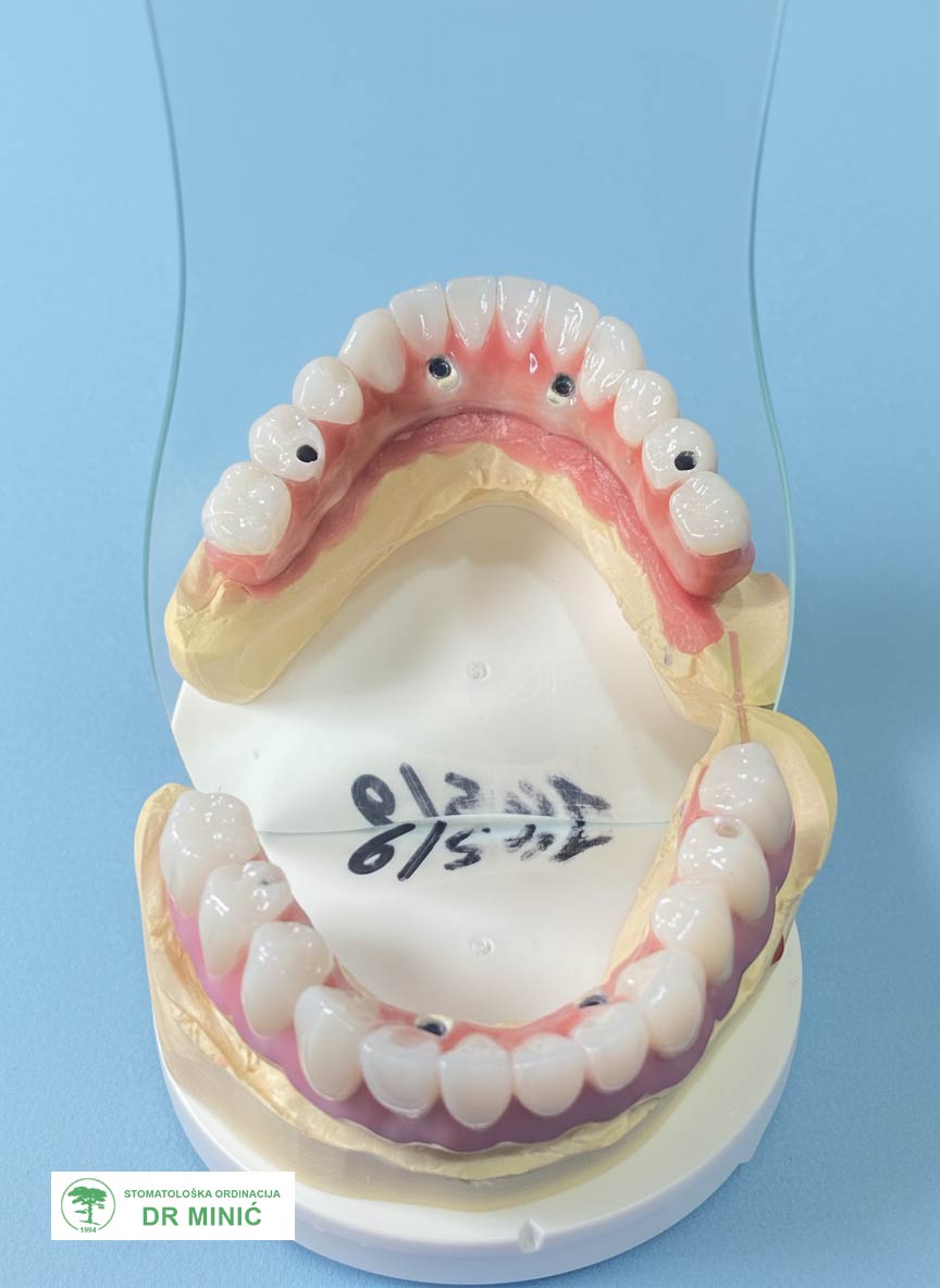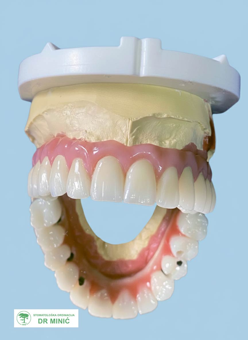 - Na kraju je izrađen završni rad sa maskom koja imitira desni i sve je cementirano u ustima.
