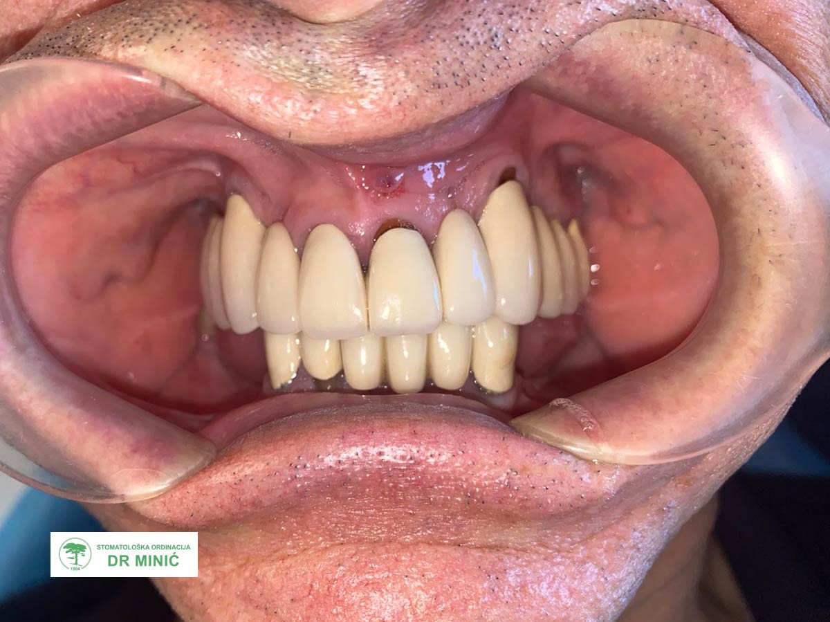 Intervencija je protekla uspešno, a pacijent je dobio stabilan, potpuno funkcionalan i estetski savršen protetski rad.